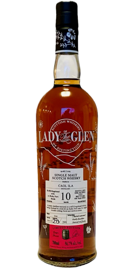 Ett torvigt destillat lagrat i en refill hogshead innan den avslutades i en first fill ex-ruby portfat i åtta månader, vilket ger blommiga och röda fruktnoter.